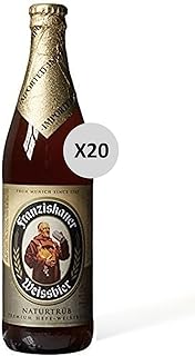 20 botellines de 50 centilitros cada uno de Cerveza Franziskaner Dunkel Weissbier, elaborada según la tradición Weissbier bávara, con 5% de volumen de alcohol. Para un mayor disfrute, se recomienda consumir a 3º C