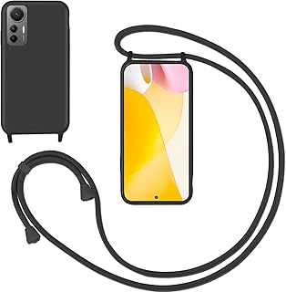 GoodcAcy Funda con Cuerda para Xiaomi Mi 12 Lite,Carcasa Silicona Líquida con Cuerda Mi 12 Lite,Correa Colgante Ajustable Collar Correa de Cuello Cadena Cordón Case para Mi 12 Lite, Negro