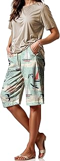 Hawaii Graphic Short for Women Fashion Casual Tropical Island Bermuda Shorts Lightweight Drawstring Elastic Pocket