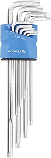 en una caja de plástico con compartimentos marcados con las dimensiones para facilitar el almacenamiento y encontrar rápidamente las llaves necesarias.