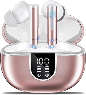 42 Horas de Batería: Auriculares Inalámbricos Bluetooth ofrecen 7 horas de reproducción con una sola carga, y con la caja, se extiende a 42 horas. Solo 10 minutos de carga añaden 2 horas más. La caja usa tecnología Type-C y tiene una pantalla LED doble independiente para verificar la batería en cualquier momento.