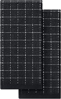 Homaxy 100% Cotton Terry Kitchen Towels(Black, 13 x 28 inches), Checkered Designed, Soft and Super Absorbent Dish Towels, 2 Pack