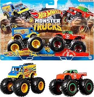 ¡Colección de rivales en cajas de dos vehículos Monster Trucks de Hot Wheels a escala 1:64! (Se venden por separado y están sujetos a disponibilidad).
