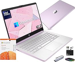 HP 14″ Light Portable Laptop 2026 Student Business, Office 365, Copilot AI, Intel 4-Core CPU, 4GB RAM, 1.6TB Storage (128GB SSD + 500GB Ext + 1TB CloudDrive), Wi-Fi 6, MarxsolAddon, Win 11S, Lavender
