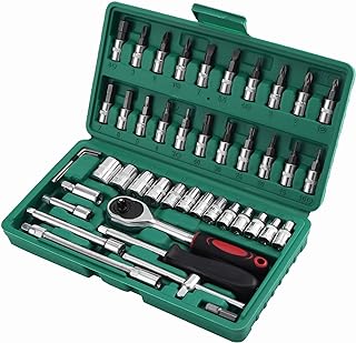 Contenido del paquete: este juego de llaves de tubo incluye 46 llaves métricas SAE con juntas universales, 2 varillas de extensión, 1 varilla flexible, 3 llaves hexagonales y otras herramientas para una variedad de usos. Los insertos de llave de tubo, trinquetes y puntas están claramente dispuestos en la caja de transporte con cierre. Con las inscripciones en el estuche siempre encontrarás la herramienta adecuada, muy práctica y facilita tu trabajo.