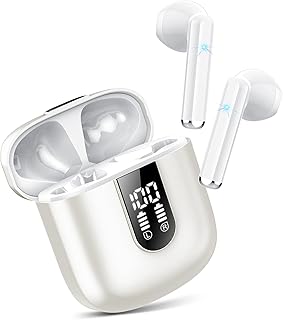 Jesebang Auriculares Inalámbricos, 2025 Auriculares Bluetooth 5.3 con HD Micrófono, Cascos Inalambricos Bluetooth con Potentes Altavoces de 13 mm, Sonido Melodioso, LED Pantalla, Blanco Perlado