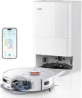 Control por app y asistente vocal en tándem: Controla el dispositivo mediante la app (escanea el código QR en el manual de instrucciones) o por comando de voz a través de Alexa/Google. Iniciar, pausar o regresar a la estación – sin tocar nada. Funcionamiento ultra-silencioso <70 dB (más silencioso que un aspirador convencional) hace que la limpieza sea una tarea secundaria.