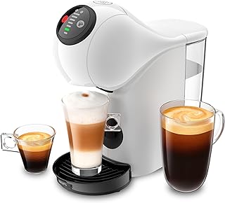 Cafetera blanca Genio S para cápsulas Nescafé Dolce Gusto, cafés más cremosos y profesionales gracias a la alta presión de las máquinas de hasta 15 bares y sus 4 niveles de temperatura y sistema Thermoblock. Cuenta con modo Eco para ahorro de energía