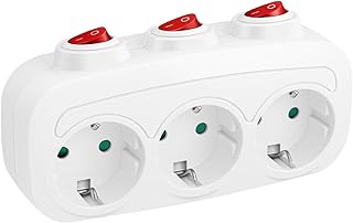 Ladron Enchufes con Interruptor Independiente, Enchufe Multiple 3 Tomas 3680W,Regletas Enchufes Pared,Vertical Trifasico Enchufe,Adaptador Enchufe Triple para Oficina, Cocina,Blanco