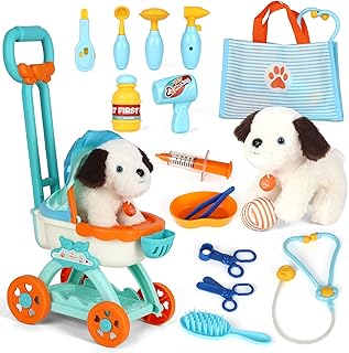 Lehoo Castle Maletin Medicos Juguete, Veterinario Juguete con Cochecit de Juguete, Kit Medico Infantil con Perro de Peluche, Doctora Juguetes, Juguetes Niña 3 Años