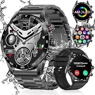 🔋【Pantalla a color AMOLED de 1.43 pulgadas, 466*466 píxeles y batería grande de 330 mAh】El reloj inteligente para hombres presume de una pantalla AMOLED IPS táctil completa de 1.43 pulgadas. La pantalla táctil mantiene la visualización continuamente encendida, con una respuesta ágil que proporciona una calidad visual delicada y una experiencia interactiva mejorada. Este reloj inteligente solo tarda 2.5 horas en cargarse. Puede utilizarse durante 5-7 días y permanecer en espera hasta 20 días.