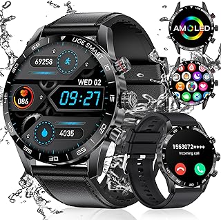 🔋【Pantalla a color AMOLED de 1.43 pulgadas, 466*466 píxeles y batería grande de 330 mAh】El reloj inteligente para hombres presume de una pantalla AMOLED IPS táctil completa de 1.43 pulgadas. La pantalla táctil mantiene la visualización continuamente encendida, con una respuesta ágil que proporciona una calidad visual delicada y una experiencia interactiva mejorada. Este reloj inteligente solo tarda 2.5 horas en cargarse. Puede utilizarse durante 5-7 días y permanecer en espera hasta 20 días.