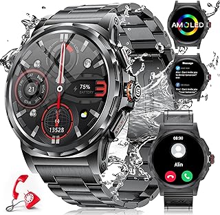 Pantalla táctil completa AMOLED de 1,43 pulgadas – Siempre activa: Eleva tu estilo con nuestro reloj inteligente para hombres que cuenta con una impresionante pantalla AMOLED de 1,43 pulgadas con una alta resolución de 466*466. Experimenta una respuesta ultrarrápida y un consumo de energía ultrabajo, garantizando un uso prolongado y eficiente. Con la capacidad de mantener la pantalla siempre encendida, mantente conectado e informado sin perder ni un latido.