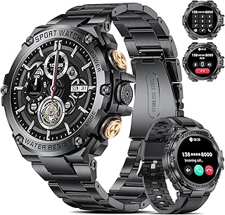 【Mantente Conectado en Cualquier Momento y Lugar】 El reloj inteligente hombre está equipado con un chip Bluetooth 5.0 que le permite hacer y recibir llamadas telefónicas, recibir mensajes de texto y notificaciones de software de medios sociales, controlar la reproducción de música y mucho más. Con este smartwatch, puede liberar sus manos y nunca tendrá que preocuparse por perder ningún mensaje importante.