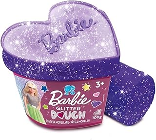 Contenido: 100 g de dough con purpurina, 1 tarro en forma de corazón con el molde Barbie