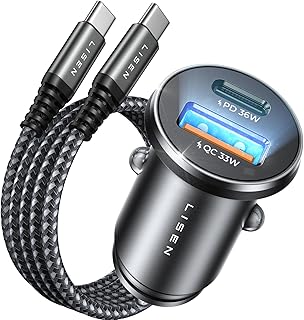 【CARGADOR DE COCHE ULTRARRÁPIDO 69W】⭐: Equipado con puertos duales para PD 3.0 (36 W) y PPS (33 W), el LISEN 69W cargador mechero usb carga rapida proporciona una carga ultrarrápida, cargando su iPhone, Samsung, Android, iPad o cámara hasta un 80% en sólo 25 minutos. Tanto si utiliza mapas como si transmite música mientras se desplaza o viaja, puede estar seguro de que su dispositivo se mantendrá completamente cargado y nunca más le pillará desprevenido una batería agotada.