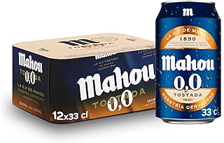 Pack 12 latas de 33 cl de Cerveza Mahou Tostada 0,0% alcohol, cerveza sin alcohol Amber Lager hecha para los que quieren disfrutar de una experiencia 100% cervecera y con sabor auténtico de cerveza. Para un mayor disfrute se recomienda consumir entre 4º y 6º C