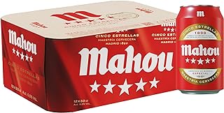 Pack de 12 latas de 33 cl de Mahou 5 estrellas, cerveza icónica nacida hace más de 40 años para satisfacer a los paladares más exigentes, con 5,5% de alcohol. Para un mayor disfrute se recomienda consumir entre 4º y 6º C