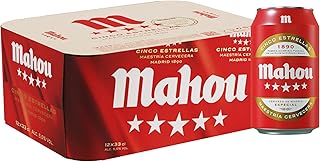 Pack de 12 latas de 33 cl de Mahou 5 estrellas, cerveza icónica nacida hace más de 40 años para satisfacer a los paladares más exigentes, con 5,5% de alcohol. Para un mayor disfrute se recomienda consumir entre 4º y 6º C