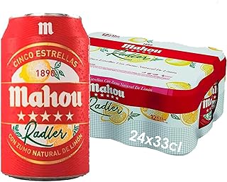 Mahou 5 Estrellas Cerveza Radler con Limón, Pack de 24 latas x 33cl, Refrescante Cerveza Limón Con 3,2% Volumen de Alcohol