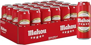 Pack de 24 latas de 50 cl de Mahou 5 estrellas, cerveza lata icónica nacida hace más de 40 años para satisfacer a los paladares más exigentes, con 5,5% de alcohol. Para un mayor disfrute se recomienda consumir entre 4º y 6º C