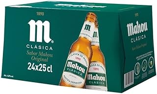 Pack de 24 botellines de 25 centilitros de cerveza Mahou Clásica, cerveza dorada lager, la cerveza de siempre que mantiene intacta su receta, sabor calidad y dedicación, con 4,8% de alcohol. Para un mayor disfrute se recomienda consumir entre 4º y 6º C