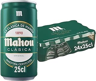 Pack de 24 latas de 25 centilitros de cerveza Mahou Clásica, cerveza dorada lager, la cerveza de siempre que mantiene intacta su receta, sabor calidad y dedicación, con 4,8% de alcohol. Para un mayor disfrute se recomienda consumir entre 4º y 6º C