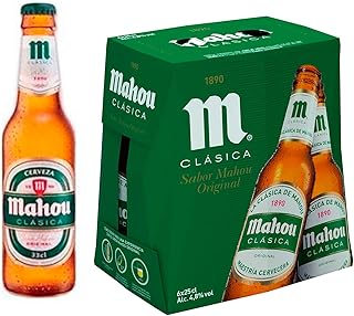 Pack de 6 botellines de 25 centilitros de cerveza Mahou Clásica, cerveza dorada lager, la cerveza de siempre que mantiene intacta su receta, sabor calidad y dedicación, con 4,8% de alcohol. Para un mayor disfrute se recomienda consumir entre 4º y 6º C