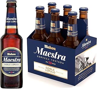Pack de 6 botellines de 33 cl de cerveza Mahou Maestra Doble Lúpulo una cerveza artesanal especial y brillante, tostada y gran cuerpo, sabor intenso y espuma cremosa y consistente. 7,5% Vol. De alcohol. Se recomienda tomar entre 4º y 6º C