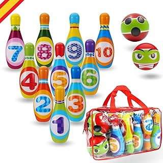 🌈 JUGUETES MONTESSORI – Nuestro juego de bolos es un juguete Montessori que fomenta el aprendizaje a través del juego y ayuda a los niños a desarrollar habilidades importantes. ✔️ REGALO PERFECTO – Nuestro juego de bolos es un regalo perfecto para niños de 2 a 6 años, ya que es divertido, didáctico, educativo y seguro, por eso se encuentra entre los regalos más vendidos entre los juguetes de niños.
