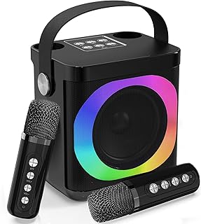 【Ocasiones divertidas de voz de Karaoke】: Los parlantes de Karaoke con 2 micrófonos son pequeños y livianos y ofrecen 7 efectos de sonido. Los micrófonos se conectan fácilmente y se cargan muy rápidamente. Perfecto para karaoke familiar, fiesta de cumpleaños, boda, reuniones de amigos, picnics.
