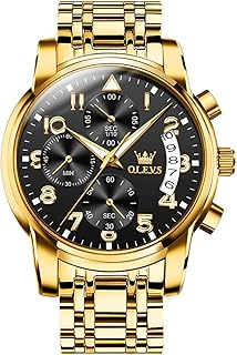 Men’s Stainless Steel Chronograph Watch, Big Face Gold Silver Black Tone Easy to Read Analog Quartz Watch, Luxury Waterproof Date Diamond Roman Arabic Numerals Dial Dress Watch for Men