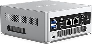 【Soporte de pantalla cuádruple 4K UHD】La mini PC viene con una tarjeta gráfica de ultra alta definición 4K@60Hz para admitir reproducción de video de alta definición 4K@60Hz y disfrutar de una experiencia visual de alta calidad. 2 puertos HDMI y 2 puertos USB-C admiten salida 4K de pantalla cuádruple y pueden conectar cuatro pantallas al mismo tiempo, la colaboración de cuatro pantallas satisface sus necesidades y puede duplicar su eficiencia en el trabajo.
