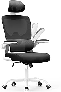 【Varias Funciones Ajustables】La silla de oficina Naspaluro cuenta con una altura de asiento ajustable de 10 cm, un reposacabezas ajustable de 7 cm arriba/abajo, 45° para brindar un mejor soporte para la cabeza y el cuello, y reposabrazos abatibles que facilitan empujar la silla debajo de su escritorio despues de trabajar.