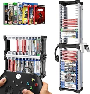 Organización y almacenamiento de juegos: La torre universal de almacenamiento de juegos puede contener hasta 46 discos de juegos, con este organizador de videojuegos tienes tus juegos en un solo lugar. El soporte del juego se puede apilar como un soporte de juego horizontal o verticalmente. Esto crea el estante perfecto para todos sus medios.