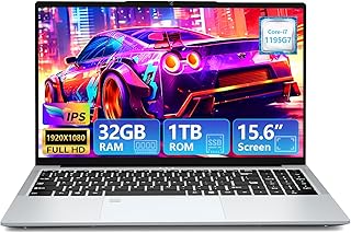 Ordenador Portátil 15,6 Pulgadas, Core i7-1195G7 CPU 32GB RAM SSD 1TB gráficos Iris Xe, PC Portátil Pantalla de 1920 x 1080 Win 11 Pro, Computadora Portátil con USB 3.0, HDMI, BT5.0 y Wi-Fi