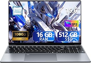 Ordenador Portátil 15,6 Pulgadas Ryzen 5 7430U Procesador 16 GB RAM 512 GB SSD Gráficos Radeon Laptop Win11 Teclado Retroiluminado, Desbloqueo de Huellas Dactilares BT 5.0 USB 3.2 HDMI Tipo C WiFi 6.0