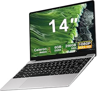 Ordenador Portátil Win 11 Pro con 5G WiFi, Portátil 14 Pulgadas 6GB RAM 256GB SSD Expansión SSD 1TB, BT 4.2 3.0 Transmisión Puerto 1920*1080 FHD Portatiles Buenos & Mini Puerto Multimedia-Plata