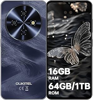 OUKITEL C5 Telefonos Moviles Libres 2025-16GB RAM+64GB ROM/TF 1TB Telefono Movil, Batería 5000mAh, 6.52" HD Pantalla Android 14 Smartphone, Cámara 13MP, 4G Dual SIM/Face ID/OTG/3.5mm Jack/GPS, Negro