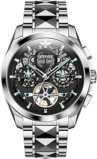 OUPINKE Men Watch Automatic 5 Hands Multi Calendar Year/Month/Week/Date Mechanical 5ATM Waterproof Luxury Tungsten Steel Sapphire Crystal Wrist Watch for Men
