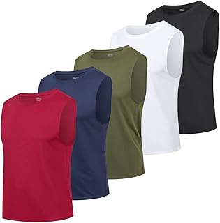 【Material】: El paquete de 5 camisetas sin mangas deportivas para hombre está hecho de tela de poliéster 100% de secado rápido para mantenerte cómodo y fresco mientras haces ejercicio. Lavable, no fácil de deformar.
