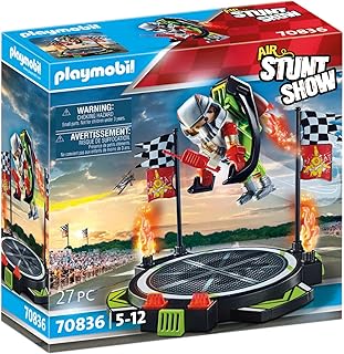 Emociónate en el curso de vuelo del Stuntshow de PLAYMOBIL: Mochila propulsora de PLAYMOBIL con equipo de vuelo y plataforma con astas para despegar y aterrizar