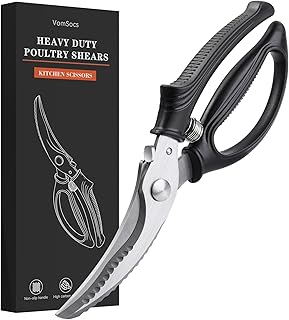 Poultry Shears, Kitchen Shears with Spring Loaded, Heavy Duty Poultry Scissors for Meat, Chicken,Turkey, Anti-Slip Handle,Safety Lock,Dishwasher Safe