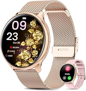 Elegante Trabajo de la Simplicidad de la Moda: QEYUMYEU smartwatch de las mujeres recientemente actualizado está hecho de vidrio curvado 2.5D con material táctil de pantalla completa y una pantalla TFT en color de 1,39 «con 360 * 360 ultra-alta resolución, que proporciona una excelente calidad de imagen HD, cinco grados de ajuste de brillo, lo que mejora en gran medida el efecto visual, y es fácil de leer la información bajo la luz fuerte, y el aspecto lindo y compacto y ligero cuerpo, adecuado para el uso a largo plazo de las mujeres. Con correa milanesa de moda y correa de silicona suave agradable a la piel, que puede coincidir con diferentes de alta moda.