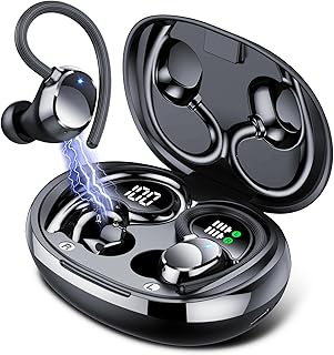 Mayor Duración de Reproducción: Los auriculares inalambricos deportivos proporcionan 8 horas de tiempo de reproducción de música con una sola carga. El estuche de carga portátil incluido puede proporcionar 7~8 cargas adicionales, lo que resulta en un tiempo total de reproducción de 60 horas. Gracias a la carga rápida USB-C, el estuche de carga se puede cargar por completo en solo 1,5 horas.