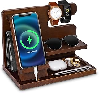 Regalos para mujeres: la base de madera multifuncional es compatible con una amplia gama de smartphones y también puede contener gafas, llaveros, anillos, carteras, monedas, relojes, notas adhesivas, clips, carpetas y mucho más.