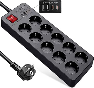 【Regleta con usb Fácil de usar】: El interruptor de encendido / apagado de control de un toque le brinda garantía de seguridad. Base de enchufe múltiple con 10 tomas de corriente a prueba de niños y 4 puertos USB, colocados en un disposición de 45° para un mejor acceso,Adecuado para uso en el hogar y la regleta oficina.