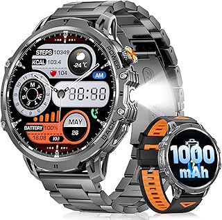 【1.85” IPS HD pantalla grande y esfera holográfica y linterna LED】 El smartwatch lige 2025 para hombre cuenta con una gran pantalla HD de 1,85” con una visualización detallada y clara y un brillo ajustable para una visión clara incluso a la luz del sol. La frecuencia de actualización de 60Hz permite un funcionamiento suave. También cuenta con más de 150 esferas de reloj dinámicas, que incluyen información meteorológica, podómetro y otros datos. La linterna LED de 800 lúmenes del lateral puede utilizarse durante más de 2 horas en caso de emergencia. Si te gustan las pantallas grandes, ¡este nuevo smartwatch es para ti!