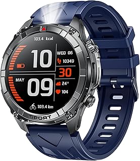 Smartwatch multifunción de larga duración: Batería integrada de 500mAH de alta capacidad, dura de 9 a 14 días. El reloj hombre viene con un cable de carga magnético, fácil de usar. Mientras tanto con asistente de voz, tiempo, despertador, control de música, LED linterna, control de cámara y otras funciones pensadas. Buena elección como regalo navideño