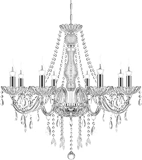 Ridgeyard Moderna lámpara de araña de cristal, 8 luces K9 Cristal Lámpara de techo colgante con cadena ajustable para el dormitorio, sala de estar, comedor, hotel, entrada (E14, Color Transparent)